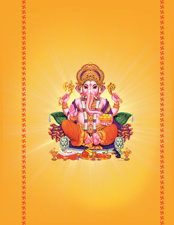 This Ganesha page is meant to be used as an introductory page for every horoscope report. The ganesha page has an orange background and comes on a 100 gsm paper with a dimension of 283 X 218 mm. It has a Ganesha image in the center of the page printed on a Vedic Scripture, that gives it an highly auspicious look. Appropriate space towards the top and bottom of the page has been provided to print the native's name and birth particulars and the astrologer's address.