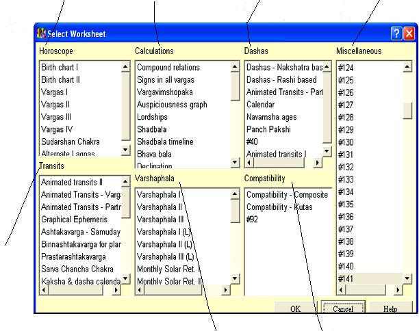 Worksheets with the Birthchart and vargas | Birthchart based tables and graphs | Dashas and other timing methods | All worksheets not falling in one of the other themes. |